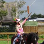 Afgelopen zondag 8 september stond het ringsteken te paard en met oude tractoren op het programma van de najaarsfeesten. Met man en macht was er gewerkt om de rijbak vochtvrij te krijgen. De gegraven geulen hebben hun werk goed gedaan want onder ideale weersomstandigheden ging het ringsteken te paard om 13.00 uur van start. Met 11 deelnemers werd er als vanouds fanatiek gestreden om de prijzen. Een genot om te zien hoe de jonge deelnemers, zeer mooi uitgedost, zich van hun beste kant lieten zien. En zo waar ook nog menig ringetje wisten te steken. Terecht dat alle deelnemers uit handen van Kees van Rijk een welverdiende BRAVO-medaille omgehangen kregen. Nick en Mike Verdel vielen net buiten de prijzen en waren gedeeld 4e. Op de 3e plaats is geëindigd Gwen Boogaards met Bram. Tessa van Dijk wist 5 ringen raak te en te steken in 4 rondes. Dat was net niet genoeg. Zij werd 2e achter de mooi verklede Jelle van Duijn. Een terechte winnaar want hij had maar liefst 6 keer raak gestoken. De grote aanmoediging ging naar Kim Zwetsloot. Zij was met haar 3,5 jaar de jongste deelnemer met Topper. Ze deed het, verkleed als indiaan, niet onverdienstelijk want wist toch ook 2 keer raak te steken.