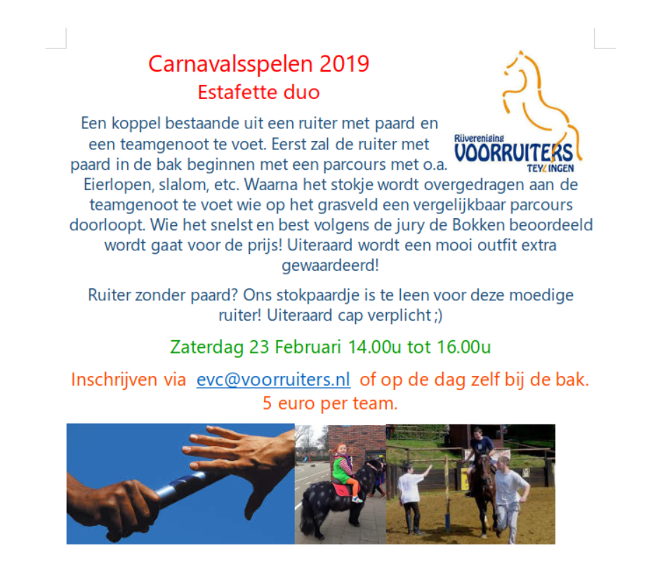 « Alle Evenementen Dit evenement is voorbij. Carnavalsspelen 2019 za 23 februari 2019 @ 14:00 - 16:00 « Springles januari Springles februari » Toevoegen aan kalender Google Calendar iCalendar Outlook 365 Outlook Live Gegevens Datum: za 23 februari 2019 Tijd: 14:00 - 16:00 Locatie De Voorruiters Tweede Elsgeesterweg 3 Voorhout, Zuid Holland 2215 SV Nederland
