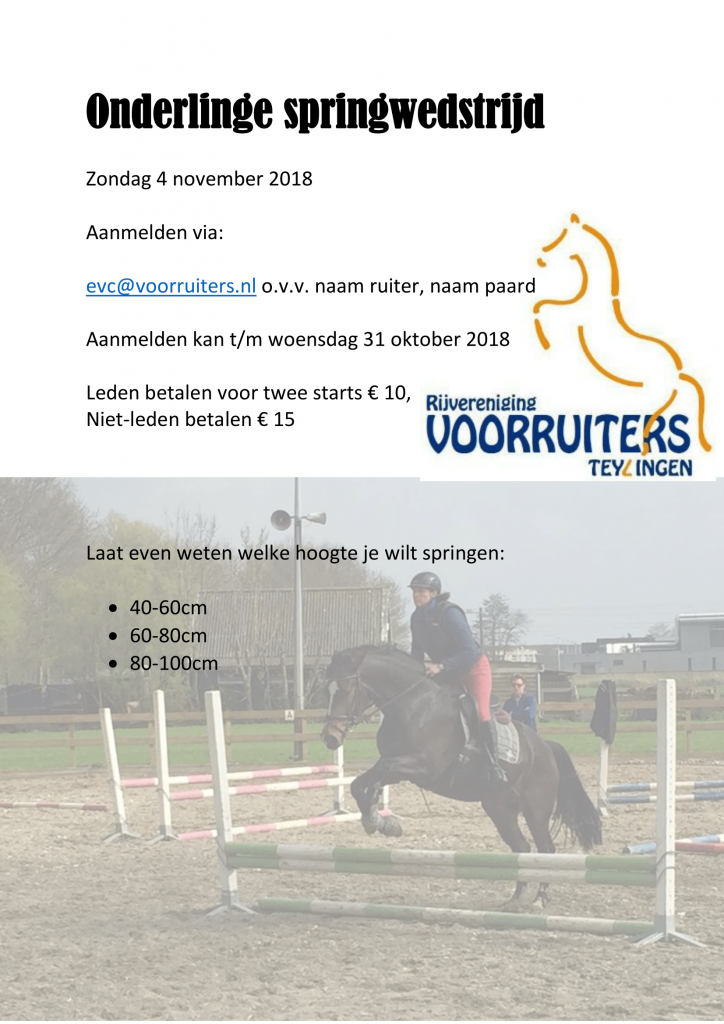 Zondag 4 november 2018 organiseert de Voorruiters een onderlinge springwedstrijd.